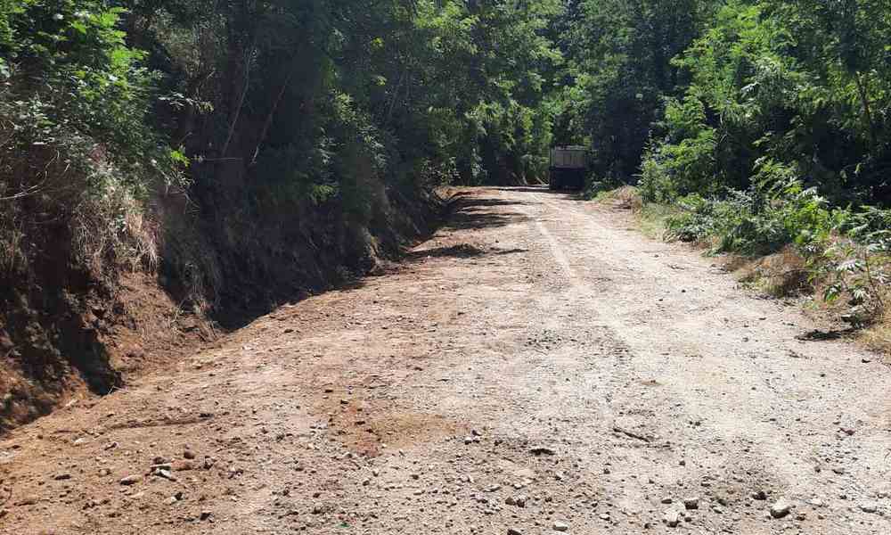 Radovi na postavljanju šljunčanog, odnosno tucaničkog zastora na putu Barije - Kaluđerce