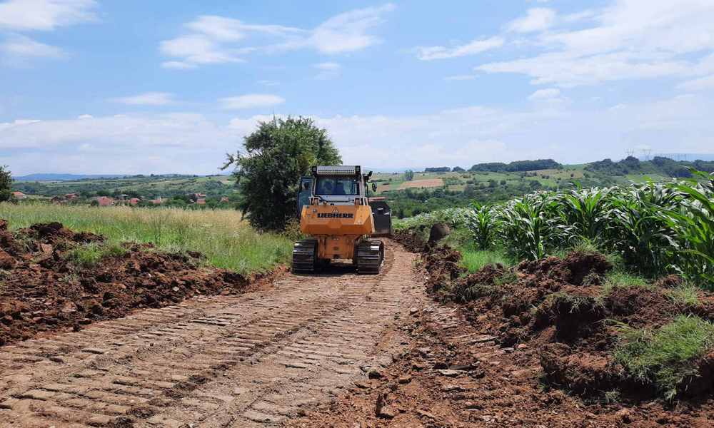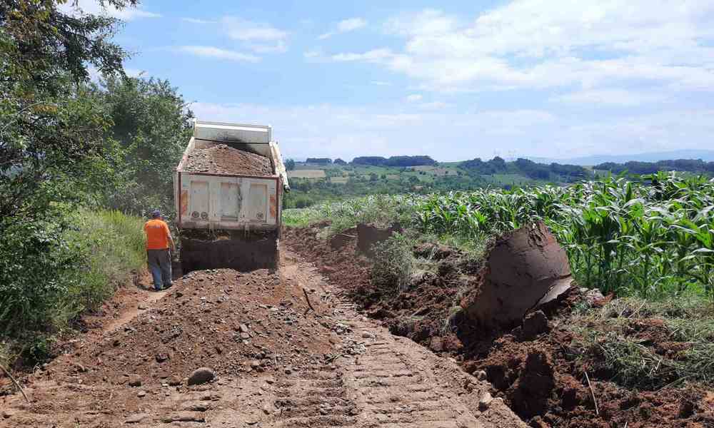 Izvode se radovi na postavljanju šljunčanog, odnosno tucaničkog zastora na neasfaltiranim opštinskim i pojedinim nekategorisanim putevima na teritoriji grada Leskovca. Ugovorom je predviđen, između ostalog i mašinski iskop odvodnih jarkova, mašinsko ravnanje poprečnog profila, radi obezbeđenja odvodnjavanja sa kolovoza i Izrada tampona od šljunka.