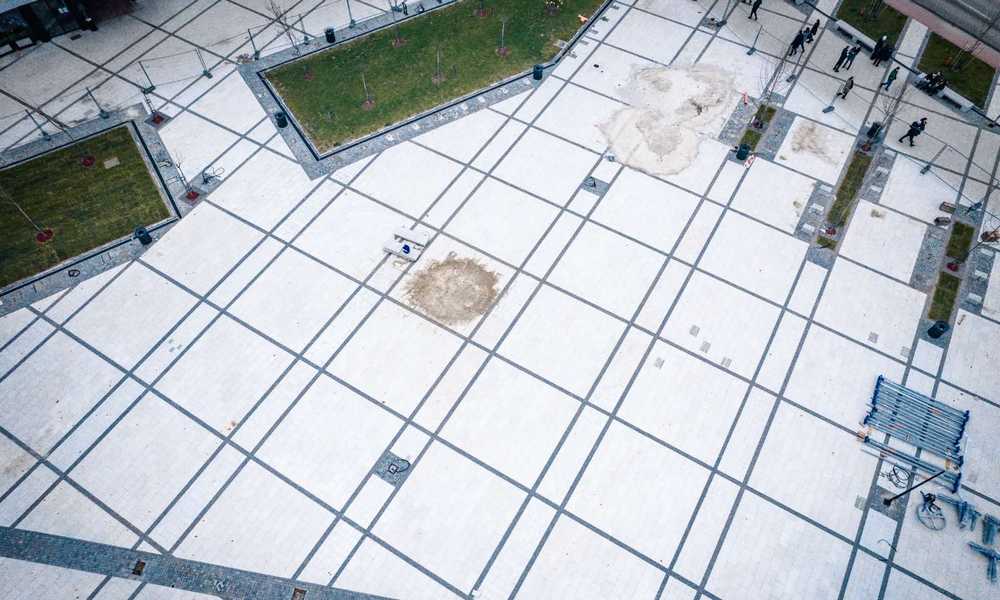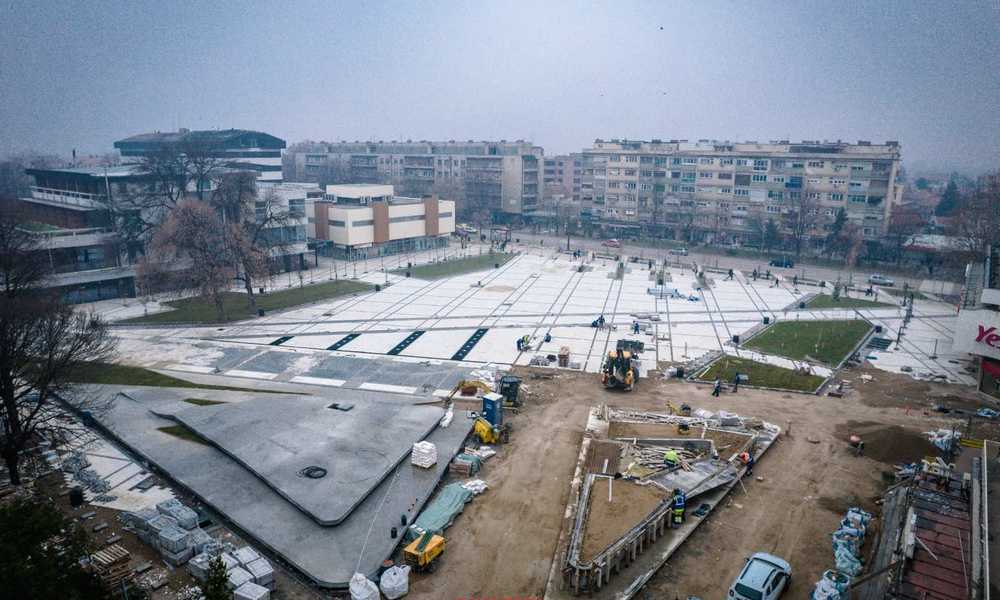 Izgled pozornice na Trgu, Pogled sa severne strane, Prilaz Trgu iz parka, Pogled na Trg odzgo, Popločanje granitnim pločama, Pogled na Trg i rekonstruisani deo Bulevara, Prilaz trgu iz parka, Pogled na Trg sa istočne strane.
