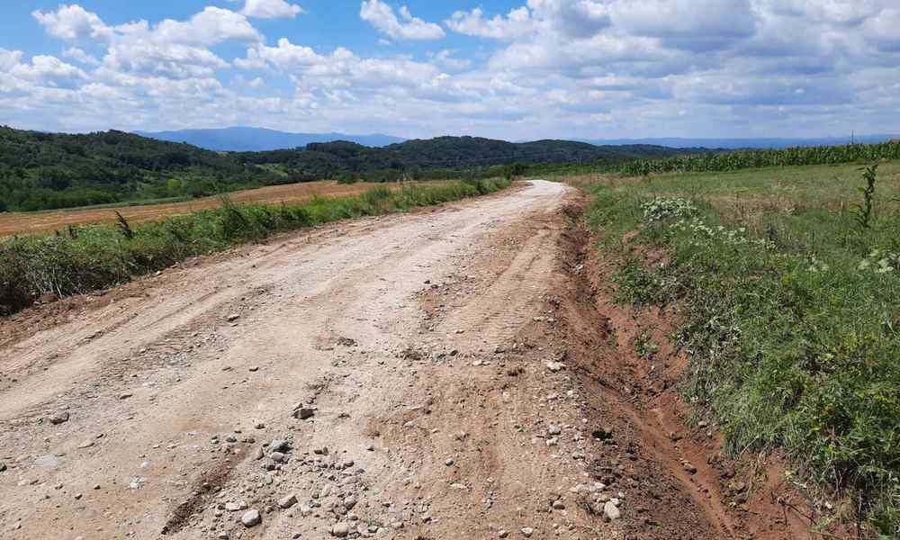 Izvode se radovi na postavljanju šljunčanog, odnosno tucaničkog zastora na neasfaltiranim opštinskim i pojedinim nekategorisanim putevima na teritoriji grada Leskovca. Ugovorom je predviđen, između ostalog i mašinski iskop odvodnih jarkova, mašinsko ravnanje poprečnog profila, radi obezbeđenja odvodnjavanja sa kolovoza i Izrada tampona od šljunka.