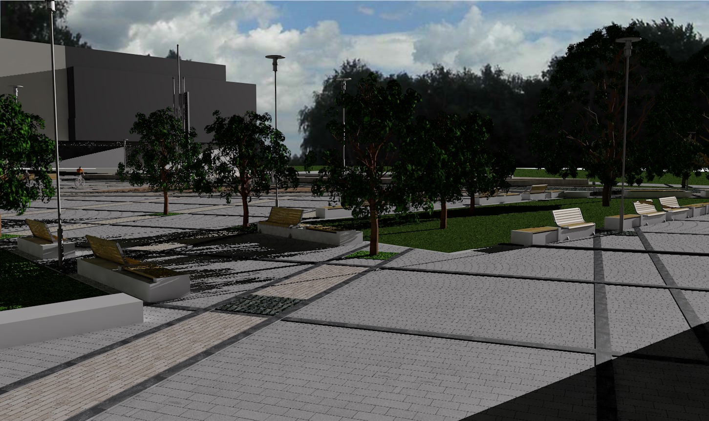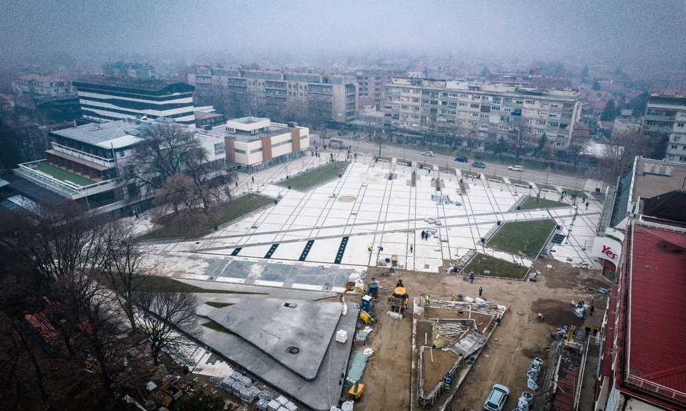 Izgled pozornice na Trgu, Pogled sa severne strane, Prilaz Trgu iz parka, Pogled na Trg odzgo, Popločanje granitnim pločama, Pogled na Trg i rekonstruisani deo Bulevara, Prilaz trgu iz parka, Pogled na Trg sa istočne strane.